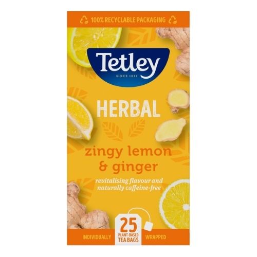 TETLEY HERBAL ZINGY LEMON & GINGER 25 TEA BAGS 50G
