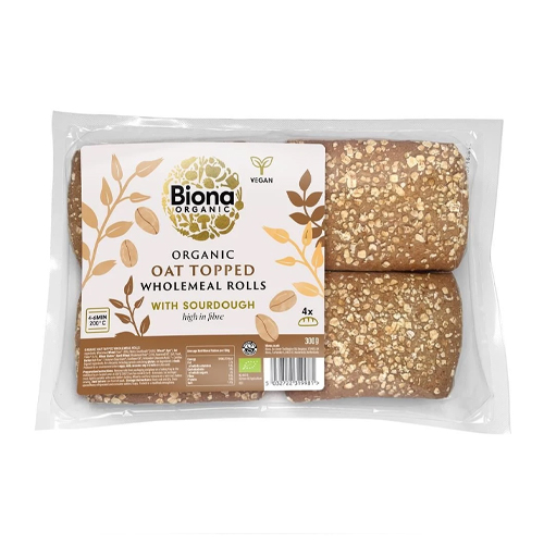 BIONA ORGANIC OAT TOPPED WHOLEMEAL ROLLS WITH SOURDOUGH 300G