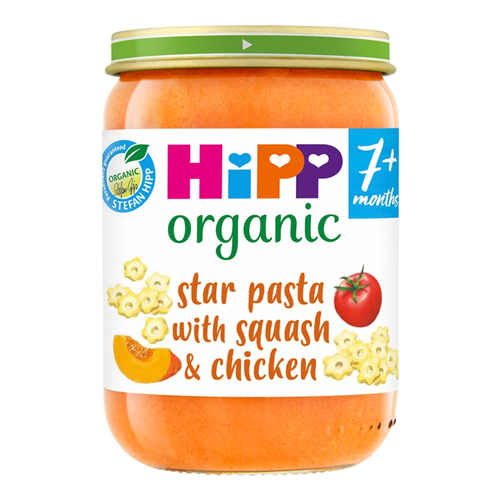 HIPP ORGANIC STAR PASTA WITH SQUASH CHICKEN BABY FOOD JAR 7+ MONTHS 190G