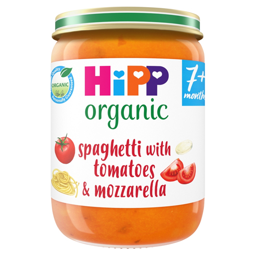 HIPP ORGANIC SPAGHETTI WITH TOMATOES MOZZARELLA BABY FOOD JAR 7+ MONTHS PMP £1.15 190G