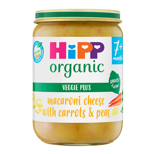 HIPP ORGANIC MACARONI CHEESE WITH CARROTS & PEAS BABY FOOD JAR 7+ MONTHS 190G