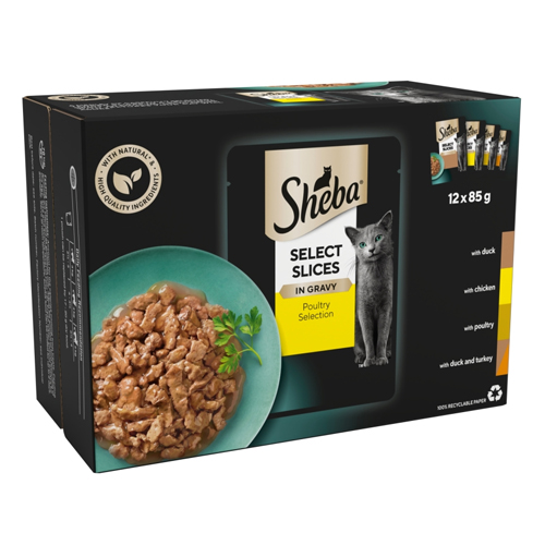 SHEBA SELECT SLICES CAT FOOD POUCHES POULY IN GRAVY 12PK 85G