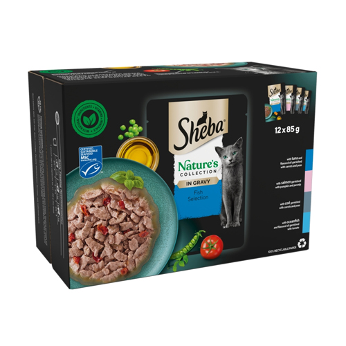 SHEBA NATURES COLLECTION CAT POUCHES FISH COLLECTION IN GRAVY 12PK 85G