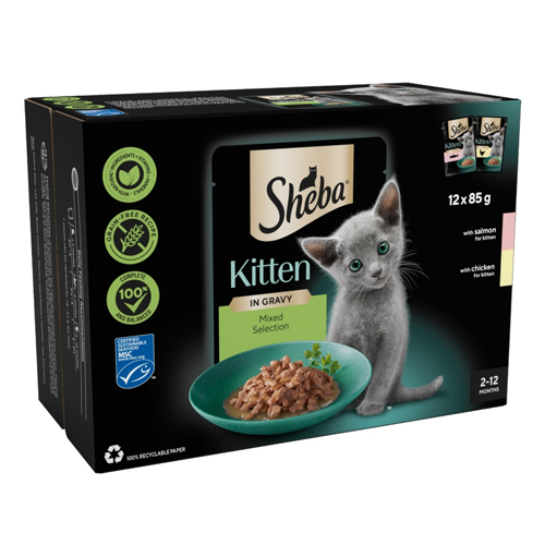 SHEBA SAUCE COLLECTION KITTEN CAT POUCHES MIXED SELECTION IN GRAVY 12PK 85G