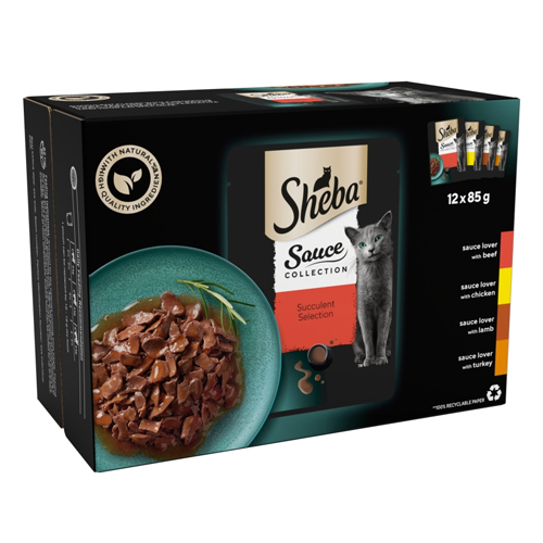 SHEBA SAUCE COLLECTION CAT POUCHES SUCCULENT SELECTION IN GRAVY 12PK 85G