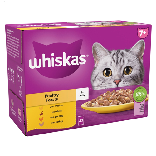 WHISKAS 7 + CAT POUCHES POULY FEASTS IN JELLY 12PK 85G