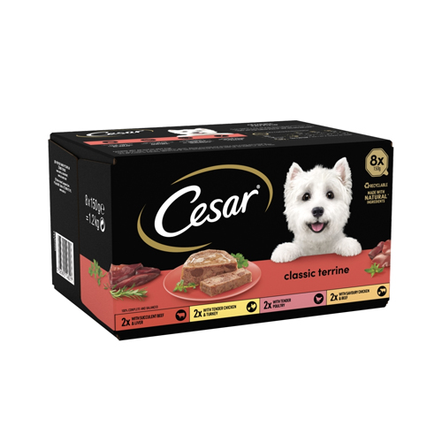 CESAR CLASSICS TERRINE DOG FOOD TRAYS MIXED IN LOAF 8PK 150G