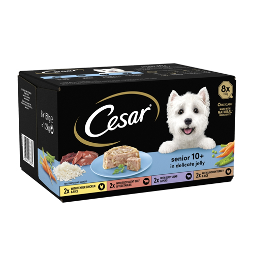 CESAR SENIOR WET DOG FOOD TRAYS MEAT IN DELICATE JELLY 8PK 150G