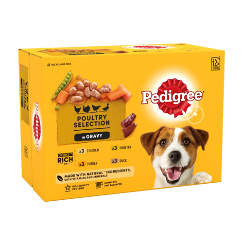 PEDIGREE ADULT DOG POUCHES POULY IN GRAVY 12PK 100G