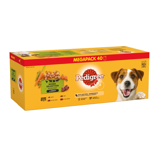 PEDIGREE ADULT WET DOG FOOD POUCHES MIXED IN GRAVY MEGA PACK 40PK 100G