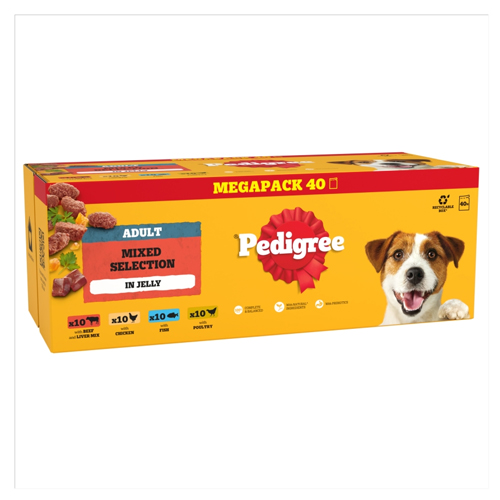 PEDIGREE ADULT DOG POUCHES MIXED SELECTION IN JELLY MEGA PACK 40PK 100G