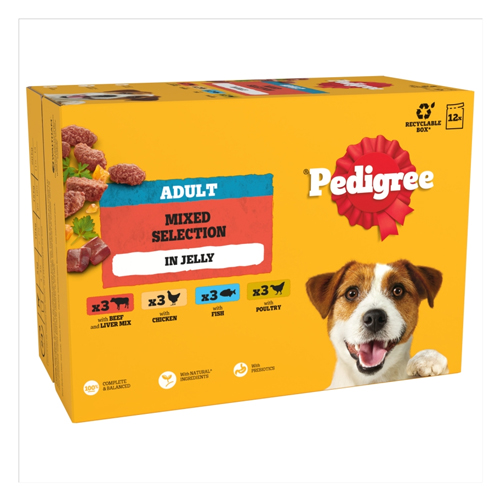 PEDIGREE ADULT WET DOG FOOD MIXED SELECTION IN JELLY POUCH 12PK 100G