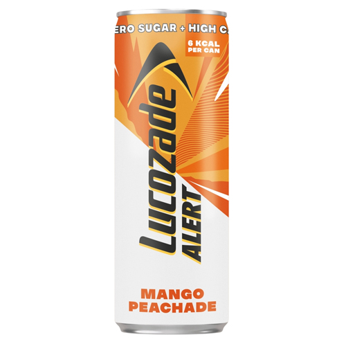 LUCOZADE ALERT MANGO & PEACH CAFFEINE ZERO SUGAR CAN 250ML