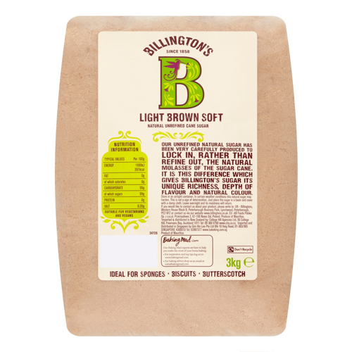 BILLINGTON'S LIGHT BROWN SOFT NATURAL UNREFINED CANE SUGAR 3KG