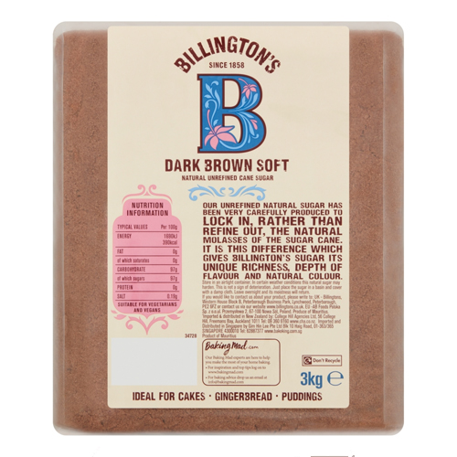 BILLINGTON'S DARK BROWN SOFT NATURAL UNREFINED CANE SUGAR 3KG